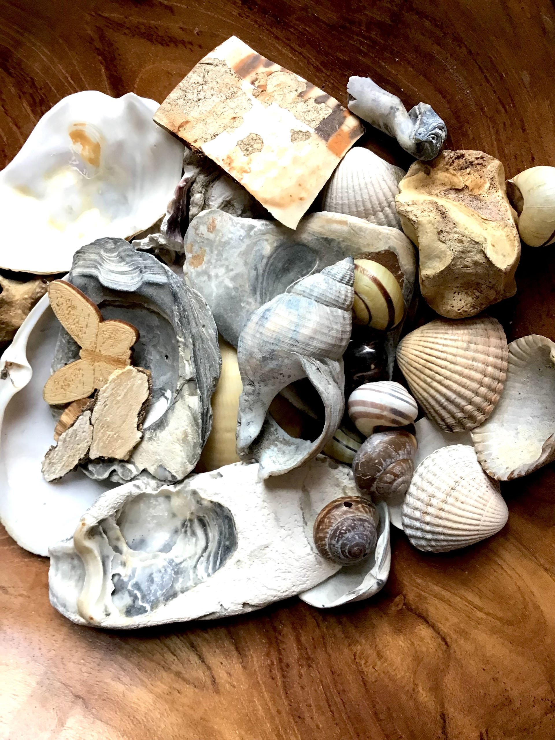 Verzamel om te beginnen 7 voorwerpen die voor jou verbonden zijn met jouw Moederlijn. Dit kan van alles zijn: foto’s, sieraden, andere herinneringen aan een moeder in jouw lijn, óf waar ik heel graag mee werk zijn voorwerpen uit de natuur. Stenen, veren, takken, bloemen, schelpen… Anything.